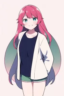 masterpiece,bestquality,simple,cartoonish,lightcolor,girl,jitteryeyes,commonprincess,youngersister,[[pinkhair]],lightredhair,darklightredeyes,longhair,lowtwin-tail,blueribbonunderhair,petite,smallbreasts,seagullmarinestyleclothing,whitebasedclothing,darkblueshorts,lightbluestripedunderwear,blackshoulderjacket,muffled,standing,fullbody,nobackground,whitebackground,backgroundpaintedwhi