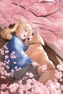 masterpiece,bestquality,[highsaturation],lightcolor,[monotonous],[watercolor],[anime], {{1girl}},Blondehair,[dogears],bigdogtail,[[[[curlyhair]]]],twintails,blueeyes,naughty,[[doubleteeth]], [[petite]],smallbreats, Japanese-styledress,blackkimono-stylesweater,longsleeves, laughing,sleepy, frombelow, sleeponone’sback,liefaceup, holdingdogs,Komainu,cute,hugdogs, [[woodshrine]],[[graycobblestone]],evening,wind, [[[[flowersinfullbloom]]]],[[rowofredtrees]],[[red,showerofcherryblossoms]],[petal], [[[[handsfinger5fingerhandskkkk]]]], nobackground,whitebackground,backgroundpaintedwhit