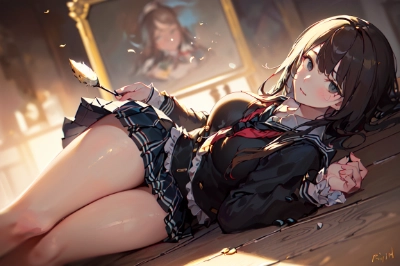 masterpiece, best quality, extremely detailed, (brushwork of Jean Honoré Fragonard, Rococo painting:1.3), (oil painting, shading, blurring, volumetric lighting:1.4), (a pure and lustful schoolgirl propelling a swing:1.6), black eyes, black hair, school blazer uniform, green leaves, big breasts, bare legs, smile, dynamic angle,