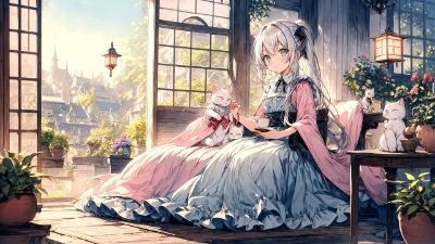 (best quality:1.4),ultraDetails extremely realistic Presence Fantastic Hand-drawn anime-style illustration that looks like a photo,water color pencil painting texture Melhen world taste,8k,(cute young kawaii maiden girl:1.2),gradation silver hair,embroidery white+light clear blue gothic and lolita clothes,gradation clear eyes,facinator,prairie skirt,cute shoes,nostalgic fantasy gorgeous flour garden art,private house,smile,small mouth,sheep,grazing,big ribbon,dignified face,flower garden,Huge panorama view,hat,rainbow,clear sky,fantastic nostalgia peaceful nature,hut,well-groomed face,small face,dynamic action