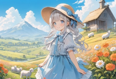 (best quality:1.4),ultraDetails extremely realistic Presence Fantastic Hand-drawn anime-style illustration that looks like a photo,water color pencil painting texture Melhen world taste,8k,(cute young kawaii maiden girl:1.2),gradation light blue hair,winered beaded embroidery cardigan,gradation clear eyes,facinator,prairie skirt,small mouth,dignified face,Huge panorama view,fantastic nostalgia water city,Gainsborough hat,clock tower,dynamic action,gentle smile,decayed battlefield,the scent of autumn,The pupils of the eyes are sparkling <lora:add_detail:0.4> <lora:sharpen-soften:0.4>