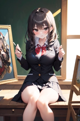 masterpiece, best quality, extremely detailed, (brushwork of Charles Joshua Chaplin, Rococo revival paintings:1.3), (oil painting, shading, blurring, Bounce Lighting:1.4), (a pure and lustful schoolgirl:1.6), black eyes, black hair, school blazer uniform, big breasts, bare legs,<lora:noline:0.8> <lora:saturation:-0.2>