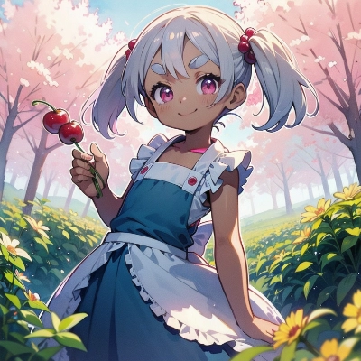 Style: (watercolor:1.4), (thick outline:1.4), illustration, pixiv, Kyoto Animation, anime, manga, artist by Tetsuhiro KOSHITA, comic, game, dandy.Character: (silver hair, pink eyes, dark skin:child, kid:1.4), cute, kawaii, (solo:1.8), pigtails, short hair, twintails, big eyes, round eyes, droopy eyes, tareme, (thick eyebrows, long eyebrows, bushy eyebrows:1.4). Subject: Kiwi.Facial expression: smiling.Pose: Holding a kiwi in his hand.Costume: casual T-shirt and jeans.Objects in place: bowl of fruit and kitchen counter.Effects: Green light sparkling around the kiwi.Atmosphere: bright and cheerful.Location: Kitchen.Composition: Illustration with a kiwi nearby, with a large kiwi and face.,
