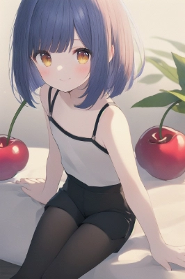 ((masterpiece, best quality, absurdres)), (pale colors:1.4), (slim black tights:1.2), slim body, (short bob:1.4), straight short bob, straight hair, blue hair, flat chest, dark yellow eyes, camisole, pink shorts, sleeping on the bed, sleeping face,,