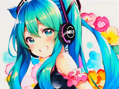 Hatsune Miku taunts with golden chains wrapped around her entire body, bondage, high heels, treasury, grin, illustration, watercolor, ink painting, colorful, lively, glossy, petite, slender, flat chest, cute, lovely, kawaii, big eyes, droopy eyes, round eyes, manga, full view, grin, Hatsune Miku, headphones, turquoise eyes, turquoise hair, {Miku}0, {{masterpiece}}, {best quality}, {{ultra-detailed}}, {detailed clothes}, {{detailed face}}, headphones