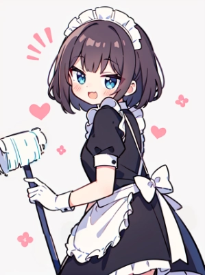 (cleaning, housekeep, maid:1.2), ponytail, short hair, mop, ,