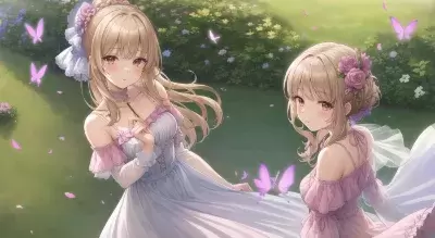 ((overlooking view)),realistic,(((masterpiece))),(best quality),((ultra-detailed)),((illustration)),(((2girls))),young,detailed face,wayvy hair,ultra-detailed lavender field, full bloom, white sundress, floral print, denim jacket, wide-brimmed straw hat, sunglasses, bouquet, lavender, wicker basket, white sneakers, flower petals, dancing, breeze, butterflies, fluttering, idyllic, peaceful, springtime
