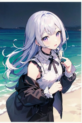 , New York City, girl, ponytail, T shirt, mini skirt, white hair, green eyes, black eyes, ojou-sama, colorful, fantasy, starry sky, full moon, night, winter, sea, star gazing, fireworks, festival, smiling,