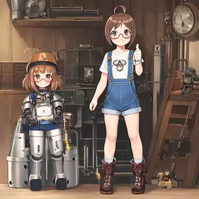 ultra-detailed, masterpiece, best quality,{{{1girl}}} silver-hair-short-bob {{{round-glasses}}} purple-eyes flat-chest pink-ribbon full-body day-light smile blue-blazer red-neck-tie skirt cape steam-punk-style steam-punk-city solo smile hands_up smile one_eye_closed,