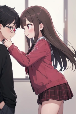 「私の眼鏡ってどう?」って感じです。 メガネっ娘なんだけど、男の子に自分の眼鏡をかけさせてる、というシチュですね。うーん、こじつけ…^^; はい、いろいろ試してみましたが女の子が眼鏡をかけていて満足できる絵ができませんでした(^^;; もともと無理ゲーということは多少試して分かったので服とか髪の色は初めからあきらめたんですが・・・ それにしても、眼鏡をかけないか、男の子の方ばっかり眼鏡をかけてる絵ばっかりで・・・(^^;;; 雰囲気を見るために他のモデルも多少試してみましたが、自分的にはあまり芳しくなかったですね。