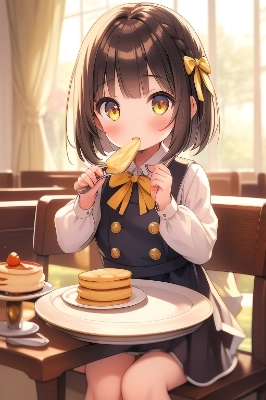 a girl,child,High detail blown hair,hair is bob,big yellow ribbon,High detail gold eyes,