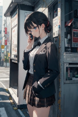 solo, little girl, make a call, Public phone booth, pay phone, outdoor, perfect anatomy, masterpiece, absurdres, best quality, intricate details, best quality, 8k, best aethetic, beautiful art, ultra-detailed, ((kawaii)), cute, open mouth, smile, Twoheadshigh,,,