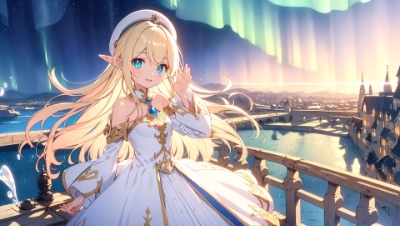 (best quality:1.2),(ultra Details extremely scrutiny reality photographic three-dimensional background:1.2),(ultraDetails extremely scrutiny Characters drawn like anime figures:1.2),8k,(sepia pastel fantasy digital cg texture vfx effects:1.2),(cute Maiden girl:1.3),vivid contrasting portrait,with healthy cute makeup,light animated expressive face,(gradation light blonde hair:1.1),waving in the breeze long hair,cute embroidered hat,elf ears,embroidery cape,gradation clear vivid glitter pupil eyes,prairie skirt,smile,small mouth,calm space view,(Very real romantic and fantastic snowflake city building background:1.2),dynamic action,,snow clouds,(shining snow with vfx effects:1.2),(soft wind with sfx effects:1.2),(soft light with CGI effects:1.2),(all vivid realistic sensation VFX SFX CGI video special effects:1.2),<lora:add_detail:-0.5>