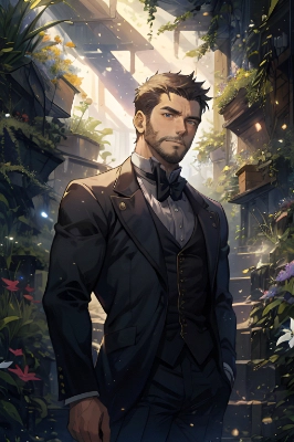 mature male, stubble, slicked back hair, vintage Hollywood actor, handsome, upper body,
