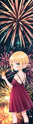 landscape, wide shot, solo, solo efl girl, (illustration:1.1), watercolor, sketch, (Botanical art background:1.3), skinny, 8yo, kid, child, flat, blunt bangs, blonde hair, short hair, elf ears, green eyes, (blouse), (ruffled collar), (skirt:1.3), smile, colorful, cosmos flowers, cosmos \(flower\), cosmos, cosmos \(flower\), (flower background:1.2), (cosmos \(flower\) field:1.2), (lots of flowers:1.3), cowboy shot, cute pose