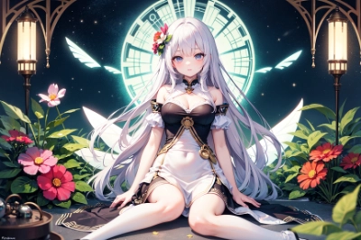(masutepiece), (Best Quality), (hight resolution), (Ultra-detailed), beautiful detailed eyes, 8k, cinematic lighting, sharp focus, colorful, holding a bouquet of cosmos, Turn around, back angle, Back angle, beautiful sky, depth of field, lens flare,,