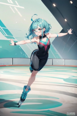 masterpiece, best quality, extremely detailed, anime,Young woman, Turquoise-blue hair, Red glasses, long-length hair, Curious, Enigmatic, Intriguing, Meticulous, Striking colors, Lifelike rendering,Young woman, Marathon outfit, Running in a race, Sporty, Athletic, Determined, Best quality, Lifelike rendering,