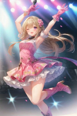 masterpiece, best quality, extremely detailed, anime, girl, skirt <lora:flat2:0> <lora:hairdetailer:1> , girl, longhair, skirt, pink hair, odd eyes, idol, fantasy, colorful, singing, smilingmasterpiece, best quality, ultra-detailed, extremely detailed, 4K, 8K, best quality, beautiful, illustration, dynamic angle, full body, gradation, full body focus, Live performance venue, a cute girl, 1girl, solo, idol, young entertainer, beautiful pink hair, beautiful brown eyes, beautiful eyes, white-skinned, long hair, hair ornaments, light smile,