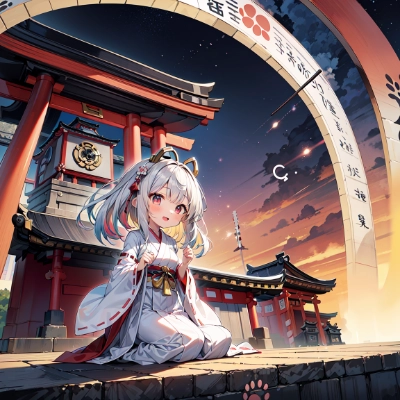 (Japanese shrine, ⛩, shrine maiden outfit, miko:1.5), 😀,, (✨:1.2),