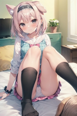 1girl, lori:2,((masterpiece)), ((best quality)), (ultra-detailed), ((kawaii)), (lovely),game cg,16years old,(dropy dog ear:1.5),black eyes,pink hair,bobcut,magical girl:1.3,Frilled pantie,Frilled headband,,