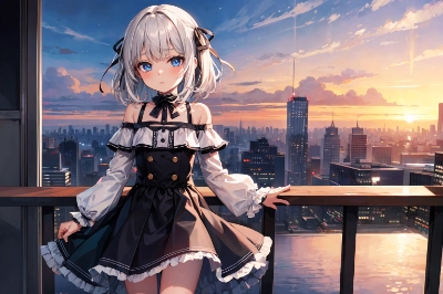 very cute female child,10 yo,black hair,red eyes,flat chest,playboy bunny,light smile,bar,beer,