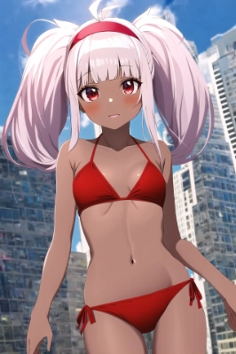 masterpiece, best quality, A kawaii cute little girl, elf ears, blonde hair, {{{{two side up}}}}, {{{{{orange bobbles}}}}}, orange eyes, high-waist shorts, {{{gym shorts}}}, {{{red shorts}}}, gym uniform, walking, {{{flat chest}}}, {{{{{topless}}}}}, nsfw, {{{{barefoot}}}}, indoor, {{{school corridor}}}