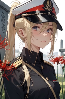 金髪をポニーテールにした年若い少尉が、 隊長らしい中年の大尉に、皿に盛ったフルーツを指さしながら差し出した フルーツの話をしているだろうに、なぜか顔を赤らめてはにかんでいる フルーツは、無花果のようだ そんな二人の様子を、眺める銀髪の伍長 あの二人、今夜は爆発しそうね 日本に来てからご無沙汰だったから あら、無花果? …… 花言葉は…… …… 気が早いわね……。どれだけするつもりかしら ちゃんと着けなさ……、着けないほうが話が早いかしら?