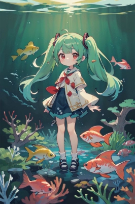 (art nouveau, too many blue rose:1.5), 1girl, solo, (full body, blunt bangs, long twintails hair, straight hair, green hair, green eyes:1.2), huge breasts, detailed eye, shiny hair, 8k, 4k, hyper detailed cg, excellent quality, highres,,