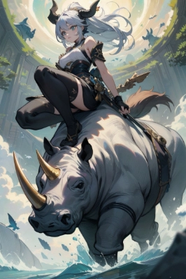 (Masterpiece:0.9), best quality, (illustration, absurd-resolution:1.1), hyper detail,Humanized rhinoceros, Rhino girl, Horned beauty, Strong and graceful, Majestic creature, Wild elegance, Rhino features, Rhino horn, Nature\'s guardian, Earthly strength, Fierce and noble, Wild spirit, Endangered beauty, Wildlife charm, Powerful presence, Rhino-inspired, Natural wonder, Rhino essence, Beastly grace, Majestic wildness,