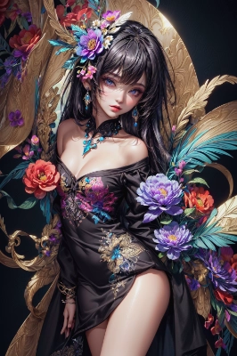 my style GhostMix potential arrange fractal+flowers zentangle+feathers abstract background