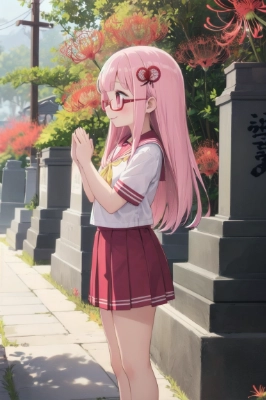 「このメガネ、似合うかなぁ〜?」って感じでしょうか? いつものメガネを変えてみようかな?と選んでます。 1枚目は一緒にいる人に、2枚目は鏡を見ながら自分自身に聞いてるってイメージですね。 なかなか思ったポーズや色、表情になってくれない…まあ、いつもそうですけど。 今回は久々に制服じゃないシチュエーションです。