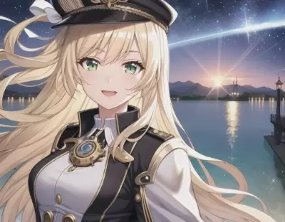 (extremely detailed CG unity 8k wallpaper:1.0),(best quality:1.0),(ultra-detailed:1.0),(best illustration:1.0),(best shadow:1.0),(an extremely delicate and beautiful:1.0),(finely detail:1.0),(cute face:1.0),(anime face:1.0),(solo:1.0),(beautiful detailed face:1.0),(shiny hair:1.0),(lens flare:1.0),(glitter:1.0),(18 years old:1.0),(green eyes:1.0),(long hair:1.0),(wavy hair:1.0),(blonde hair:1.1) and (white hair:1.1),(flower hair ornaments:1.0),(seductive smile:1.0),(open mouth:1.0),(black military uniform:1.0) with (white long coat:1.0) with (detailed Steampunk:1.2),(hat:1.1),(highly detailed),(Impasto:1.1),(intricate:1.0),(digital painting:1.0),(shadow:1.0),(landscapes:1.0),(fantasy:1.0),(delicate grassland:1.0),(piers:1.3),(lake:1.3),(villiage:1.2),(lights,clear sky:1.0),(wind:1.0),(beautiful sky:1.0),(cumulus:1.0),(night star:1.1),