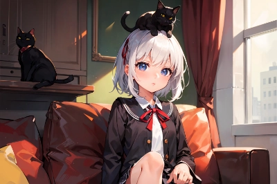 very cute female child,10 yo,white hair,bangs,medium hair,blue eyes,flat chest,