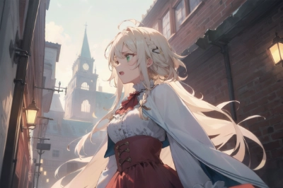 masterpiece, best quality, extremely detailed, ((beautiful structure)), anime, ((perfect anatomy)),shoot from above, dynamic angle, from side, upper body,window side, a beautiful cat, stripe light gray american shorthair, a cat is kitten,She holds cat to her cheek,BREAK,the girl have that messy hair, vary long hair, braided half-up, shiny hair, platinum blond hair and light green eyes, smug, peaceful,BREAK,She wear the red lace capelet and long sleeve blouse with frill and red skirt <lora:saturation:0.2> <lora:yawanuri:0.4> ,