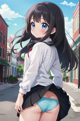 masterpiece, best quality, extremely detailed, anime,((masterpiece)), ((best quality)), amusement park, blue sky, extended upskirt, sunlight, :d, hairpin, ringed eyes, teenage, (walking), pantyshot, fantasy cloth, looking back, ,