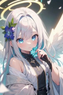 masterpiece, best quality, extremely detailed, anime, girl, skirt <lora:hairdetailer:0> <lora:gloweyes_v100:1> , girl, longhair, blue hair, yellow eyes, princess, fantasy, white flower, On your back, reaching, water,