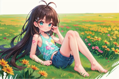 Bed,Pillow,Blanket,Sheets,Mattress,Nightstand,Lamp,Alarm clock,Dresser,Wardrobe,Closet,Mirror,Curtains,Rug,Hangers,Bookshelf,Chair,Television,Remote control,Wall art,Bedside table,Bedspread,Slippers,Window blinds,Laundry hamper,waking up, sleepy, Bedrooms, Half closed eyes, in room,Indoors, yawning, (Solo:1.3),adjusting clothes, on bed,6 years old, (loli:1.3), mini girl, baby face, toddler, 3 heads high, (pedo:1.3),short blond hair, messy hair, (fang:1.1), double tooth, flat chest, pink shirt, very short denim pants, off shoulder, hair band, antenna hair,oily skin, excessive detailed navel, pink eyes,full body, happy smile, highlight on eyes, (Best Quality, masutepiece:1.2),(hyperdetailed face:1.3), Highly detailed, intricate detailes, (Beautiful face:1.2), high detailing, Perfect face, (Ultra High Quality:1.2),(absurderes:1.2), hight resolution, perfect design, Perfect hands, smooth soft skin, Natural Skin,(superfine illustration:1.2),madeon, High contrast, watercolor paiting, <lora:saturation:1> <lora:make25d_type2_v100:1> ,