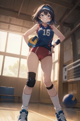 (((masterpiece))), (((best quality))), (((ultra detailed))), (((high-resolution))), ((super fine illustration)), ((Ultimate cutie)), detailed beautiful face, shiny hair, (gyaru), ((plump)), (((2girls))), (((2female volleyball players))), ((yuri)), ((evil grin)), smirk, ((blush)), (smug face), BREAK, (((hold the stained spherical shape 6-inch volleyball))), hand on hip, BREAK, (((buruma))), (Volleyball Uniform), sleeveless volleyball uniform, (((buruma))), (kneepad), (elbow pad), (bare Hands), ((sweat)), ((covered in sweat)), (breath), in Volleyball Court, in gymnasium, lighting, from below, looking down