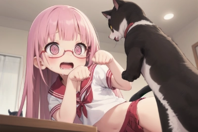 masterpiece, best quality, extremely detailed, anime, girl, 14 years old, child, small breasts, thin body, small hip, thin thighs, pink hair, (messy long hair), wept bangs, (pink eyes), wearing sailor suit, short sleeve, (yellow sailor ribbon), white sailor breast cloth, (red sailor collar), (wearing red long flared skirt), classroom, blush , standing, from front, looking straight at viewer, upper_body, clear eyes, half-closed_eyes, red Wellington eyeglasses, hands_up, shut mouth, (both hands in front of lower chest), ((close both hands)), ((close both index fingers)), (((connect both index fingers each other))), ((touch both index fingers each other)), ((bend both wrists inward)), (bend slightly both index fingers)) <lora:boldline:-1> <lora:agomaru:-1>,