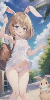 masterpiece,kawaii,{kawaii},cute,{cute},elephant,elephant,elephant,1 wet medium length light brown hair smile cute girl,wear cute elephant,school, kimono,midium breast,pantie,outside,sky,summer,shining,(low quality:0.8),