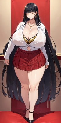 tachi-e,(best quality,masterpiece:1.3),(mature woman,milf,muscular,giantess:1.3),(expressionless:1.1),blazer,(Very Long Legs,tall:1.3),pantyhose,necktie,plaid skirt,yelloweyes,black hair,(sidelocks,very long hair,hime cut,blunt bangs:1.3)<lora:VeryLongLegs_v151:0.3><lora:head_slider_v2:1.3><lora:body_size_control_v1.0:-1.3><lora:short_torso_long_legs_v1.0:0.3><lora:anti_longtorso_v10:0.3>