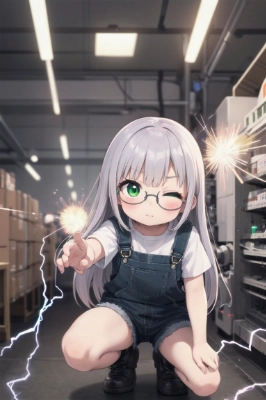 Blond long hair,child girl,blue eyes,put on glasses,overall,one knee,reading a book,
