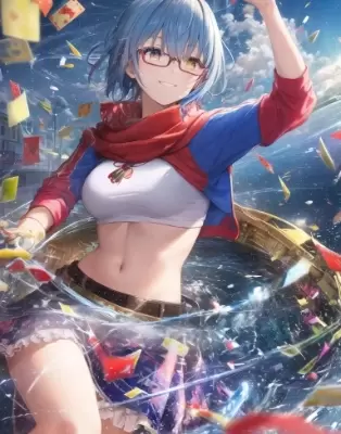 1girl, (close to viewer:1.6),smile, (bubbles effects:1.5),wearing glasses, semi-long straight hair, black hair, white shirt, black ribbon, black skirt,(large aquarium:1.4), (many bookshelves:0.9),(lots of fish:1.0),
