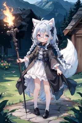 ((insanely detailed witch,black robe )),focus,blush,glasses,fox tail,
