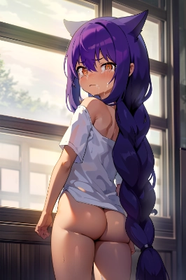 <lora:Jahysmol_15_15:0.9> jahysama, 1girl, very long hair, hair flaps, animal ears, shirt, clothes writing, short sleeves, naked shirt, looking at viewer, frown, ((crying)) <lora:chibi-tiemie:1> tiemie, chibi,