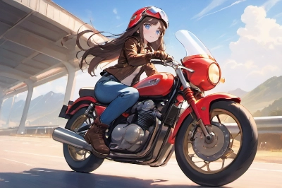 (masterpiece:1.2), (best quality:1.3), (extremely detailed:1.4), (beautiful structure:1.4), (perfect anatomy:1.6), anime, beautiful eyes, solo girl, (motorcycle with heritage style near her side:1.5), (a golden outdoor gasoline stove:1.6), (She is sitting and eating the instant cup noodle:1.2), dynamic angle, happy, peaceful,