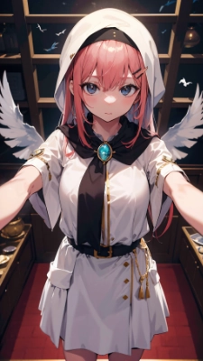 (masterpiece:1.1), (best quality:1.1), (high quality:1.1), (absurdres:1.4), (highres:1.4), 1 girl, solo, light skin, Long hair, Temple, (Fashion show:0.8), (Bird\'s Eye View:1.2), (Brooch:1.2), (Blushing:0.8), (Peter Pan collar:0.6), (Headscarf:1.2), (Cloak:0.8), (Tattoo:0.6),