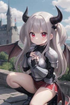 とある廃墟で恋する悪魔の女の子からの契約(逆プロポーズ)を迫られる男の子。 自分よりも小さい男の子の身長に合わせて跪いてるところはこの悪魔の紳士的な礼儀正しさです