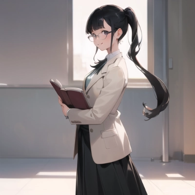 1girl, extremely cute and beautiful girl,(highly detail face: 1.2), highly detailed eyes,delicate and Beautiful hair,(black hair),slender,parted bangs,low twintails,big eyes,(lady teacher:1.2),(glasses),(Holding a textbook with one hand while explaining:1.4),