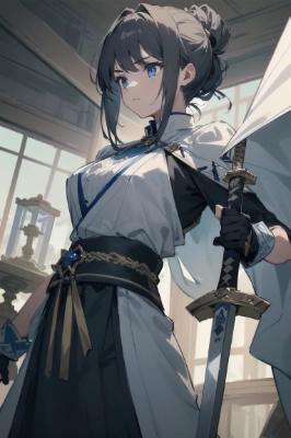 masterpiece, best quality, extremely detailed sword, focus on sword,looking at sword,(in the hands of a female swordsman, behold the pinnacle of domestic craftsmanship, a blade so exquisite it defines the nation\@!@s finest),(picture her poised, the gleaming sword reflecting her unwavering determination),(with each movement, she embodies the artistry and strength that define the pinnacle of our nation\